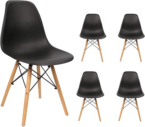 Amazon Com Devoko Modern Style Dining Chairs Mid Century Pre Assembled Dsw Chair Classic Shell Lounge Plastic Side Chairs For Dining Room Kitchen Living Room Set Of 4 Black Chairs