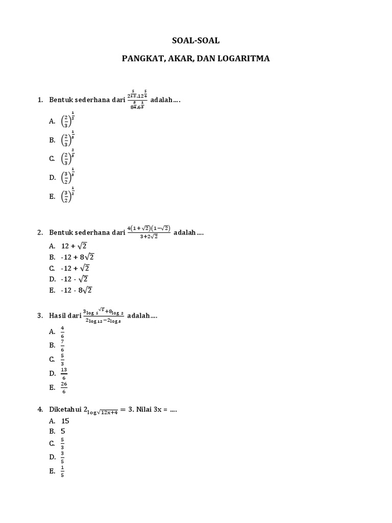 (PDF) CONTOH SOAL EKSPONEN DAN LOGARITMA | Marlina GheuLiz ... from 0.academia-photos.com A disebut bilangan pokok logaritma atau basis, b disebut nilai yang dilogaritmakan dan c adalah hasil dari. Teori tentang logaritma pertama kali diperkenalkan oleh ilmuwan yang bernama john napier yang lahir pada tahun 1550 di dekat edinburgh, skotlandia. Oleh admindiposting pada 16 januari 2021. Bentuk akar merupakan akar dari bilangan rasional yang hasilnya ialah bilangan irasional (bukan bilangan rasional). Materi logaritma yang akan kita bahas berisi pengertian logaritma, sifat logaritma, rumus logaritma, persamaan logaritma, pertidaksamaan logaritma, logaritma natural, tabel logaritma, dan contoh soal logaritma beserta pembahasannya. Akan tetapi, perkembangan ilmu matematika juga terjadi. Postingan ini membahas contoh soal logaritma dan pembahasannya atau penyelesaiannya + jawaban. Jika jumlah tiga bilangan itu adalah 6, maka x + y =.