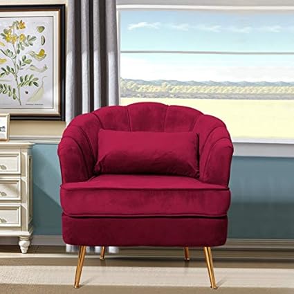 Inmozata Velvet Fabric Tub Chair Modern Armchair Club Chair Upholstered Occasional Accent Chair With Pillow For Bedroom Dinging Living Room Office Coral Home Kitchen Living Room Furniture