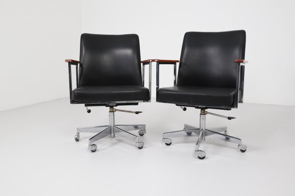 Modern Black Leather Office Armchairs From Mauser Werke 1960s Set Of 2 For Sale At Pamono