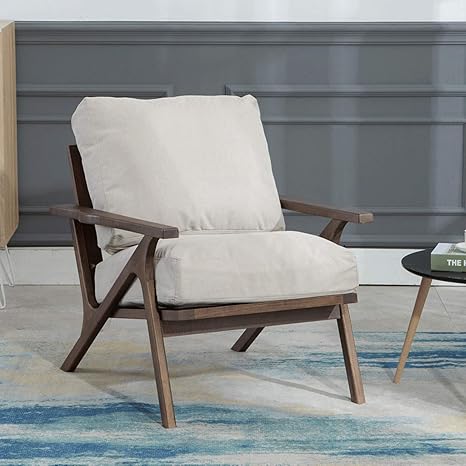 Amazon Com Mid Century Retro Modern Fabric Lounge Chair Comfy Upholstered Back Wooden Arm Chair For Living Room Bedroom Hosting Room Gray Kitchen Dining