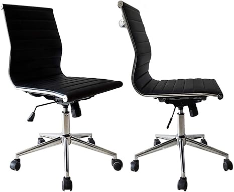 Amazon Com 2xhome Executive Mid Back Pu Leather No Arms Rest Tilt Adjustable Height With Wheels Lumbar Support 2 Chairs Black Kitchen Dining