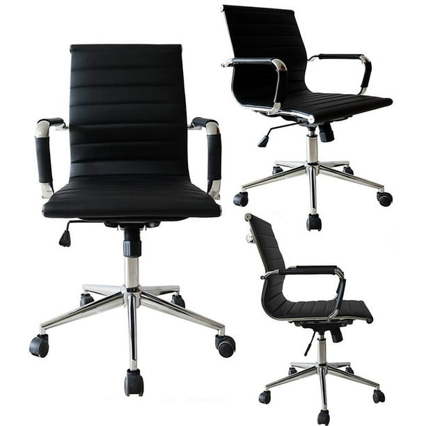 Modern Black Mid Back Office Chair Computer Desk Chairs With Armrests Ebay
