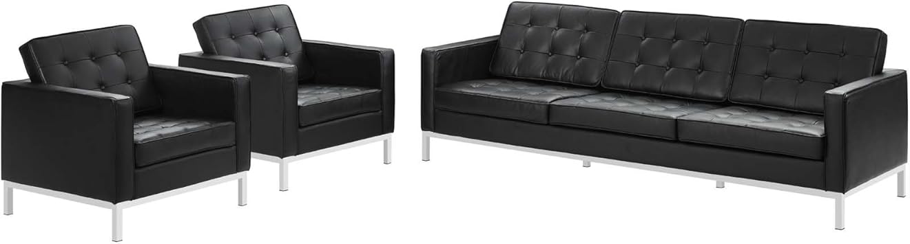 Amazon Com Modern Contemporary Living Room Lounge Club Lobby Armchair And Sofa Set Genuine Leather Black Furniture Decor